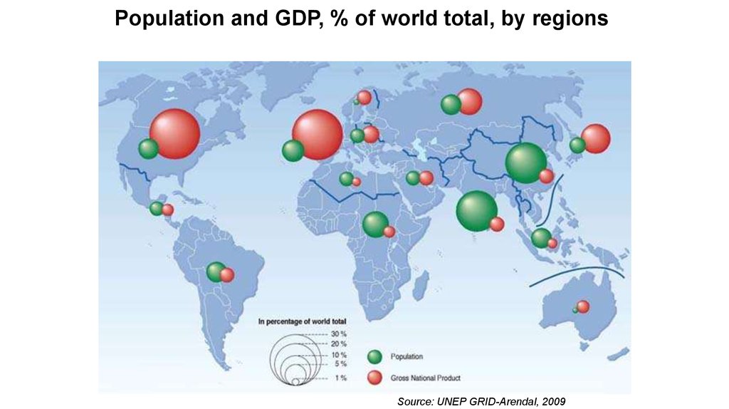 Population and GDP, % of world total, by regionsSource: UNEP GRID-Arendal, 2009
