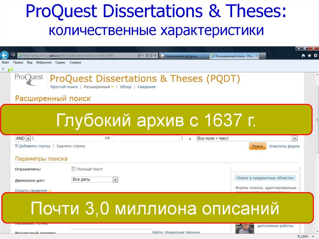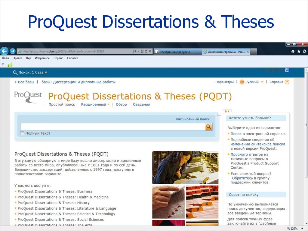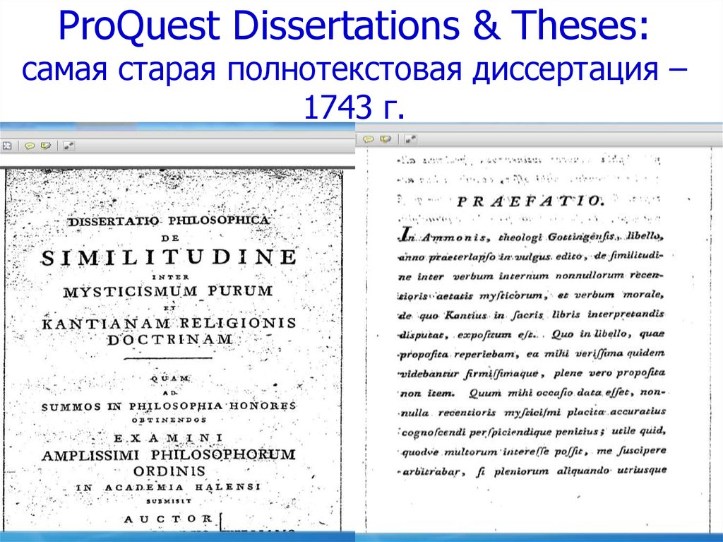 ProQuest Dissertations & Theses:самая старая полнотекстовая диссертация –