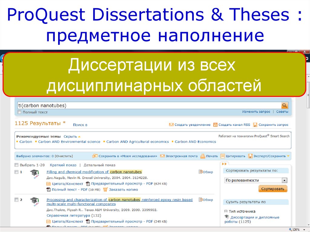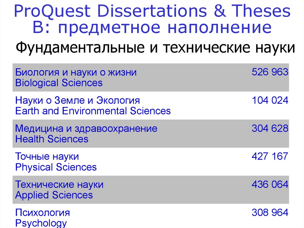 ProQuest Dissertations & ThesesB: предметное наполнение