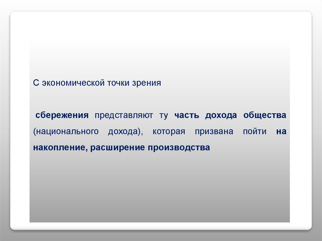 С экономической точки зрениясбережения представляют ту часть дохода общества