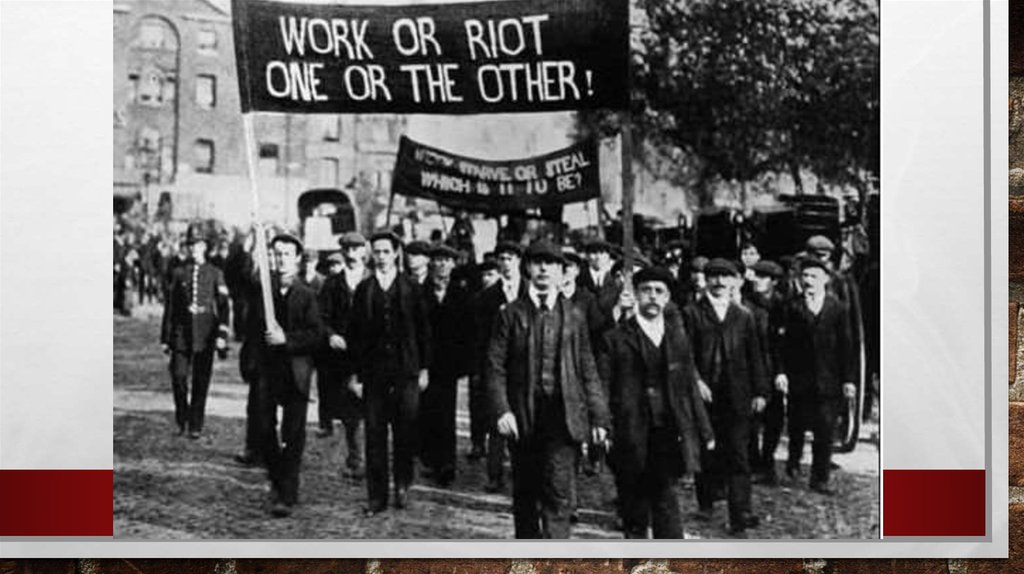 • Высокая безработица в связи с тем, что с фронта вернулись миллионы