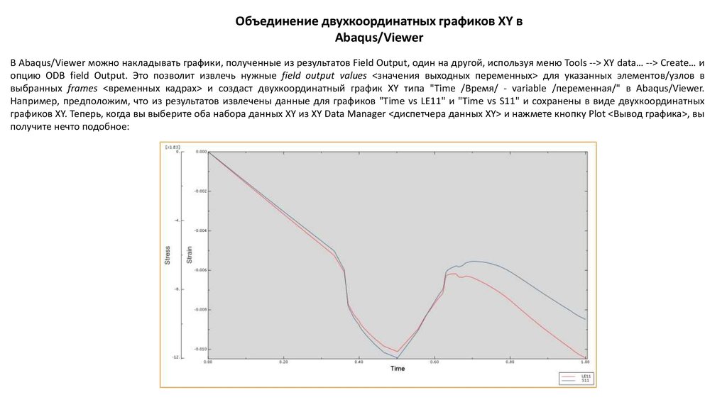 Объединение двухкоординатных графиков XY в Abaqus/Viewer