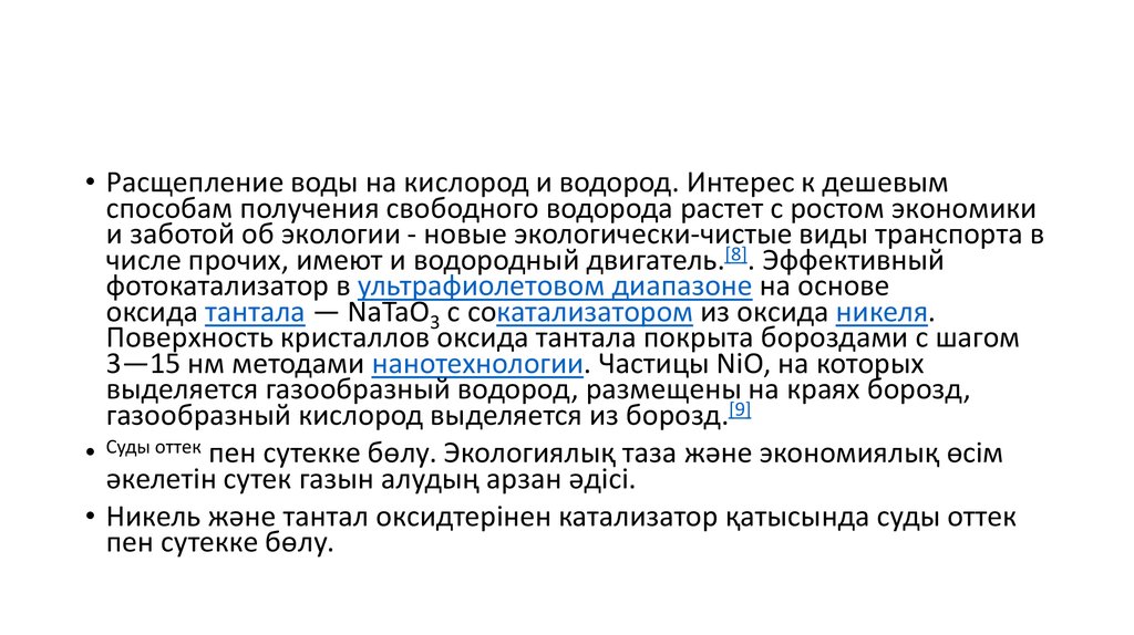 • Никель және тантал оксидтерінен катализатор қатысында суды оттек