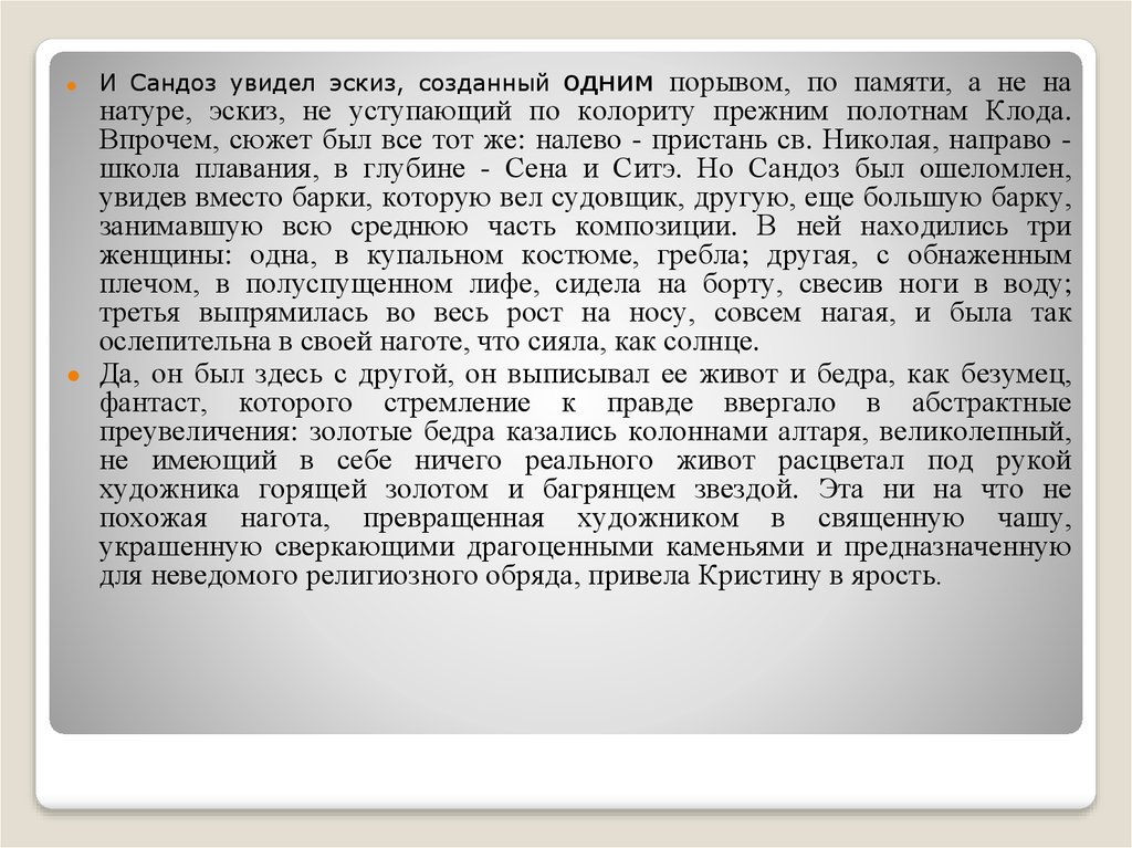 Впрочем, сюжет был все тот же: налево - пристань св. Николая, направо школа плавания, в глубине - Сена и Ситэ. Но Сандоз был ошеломлен,