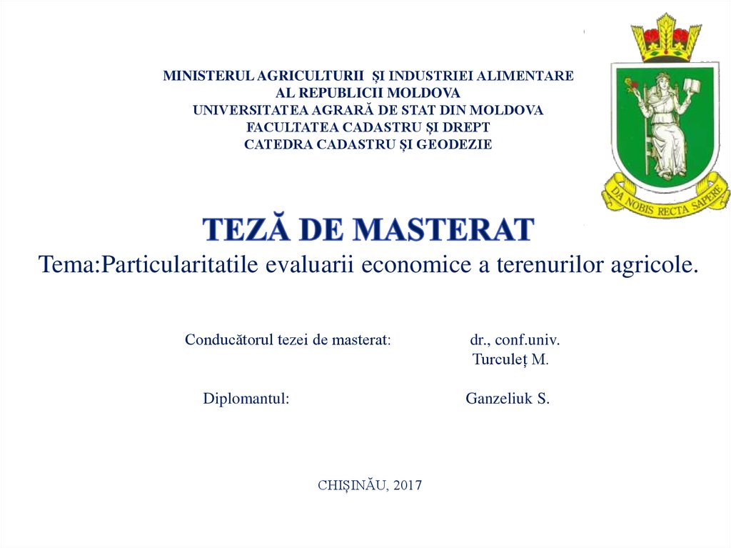 1. MINISTERUL AGRICULTURII ȘI INDUSTRIEI ALIMENTARE AL REPUBLICII MOLDOVA UNIVERSITATEA AGRARĂ DE STAT DIN MOLDOVA FACULTATEA