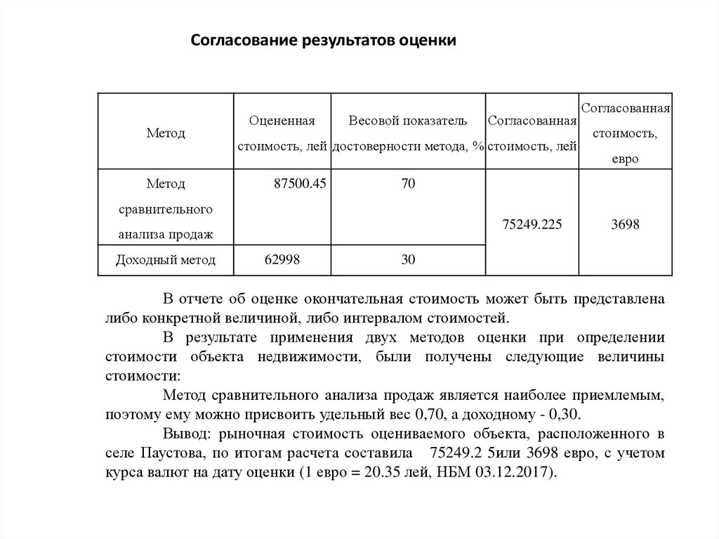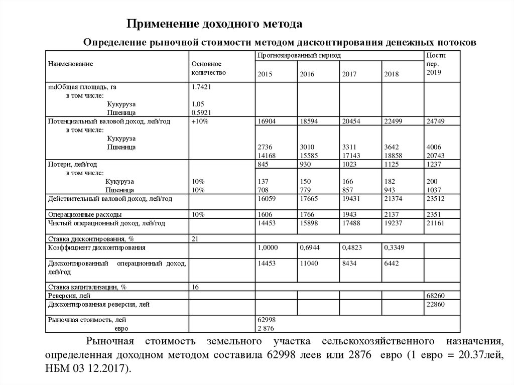 определенная доходном методом составила 62998 леев или 2876 евро (1 евро = 20.37лей,