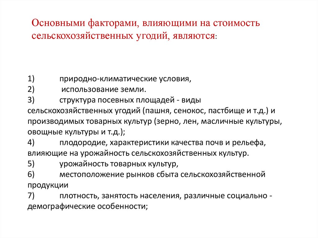 1)Структура процесса экономической оценки земель сельскохозяйственного