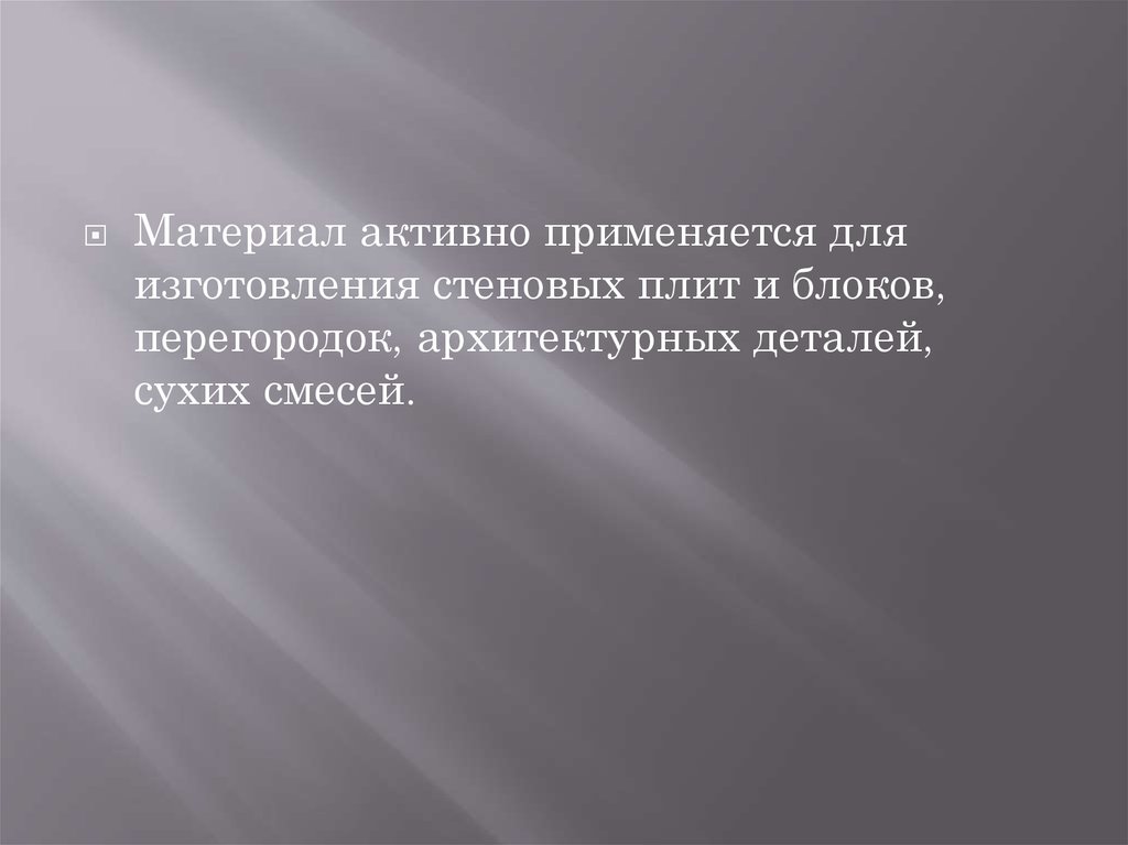 Материал активно применяется дляизготовления стеновых плит и блоков,
