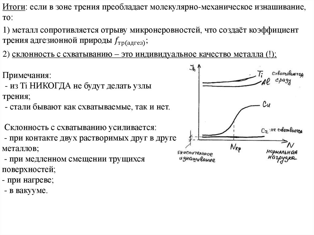Итоги: если в зоне трения преобладает молекулярно-механическое изнашивание,то: