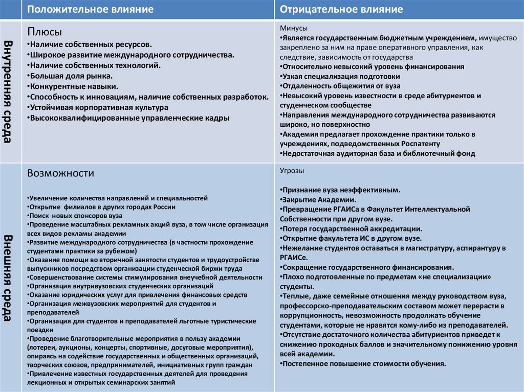 SWOT-анализ ФГБОУ ВПО РГАИС