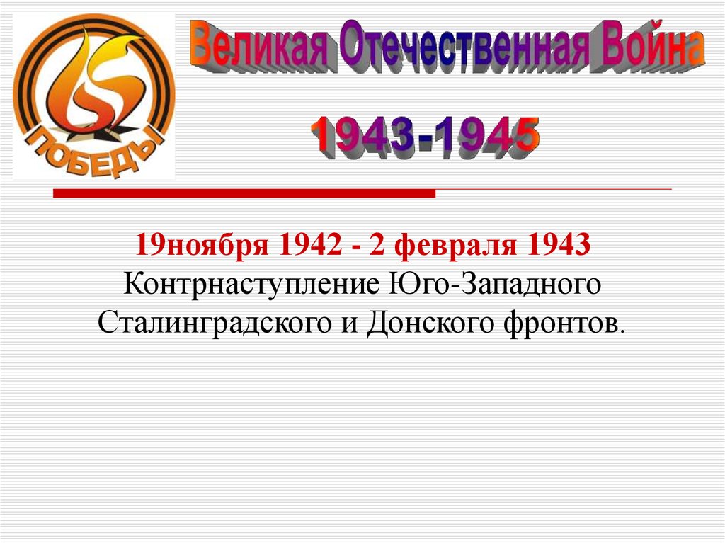 19ноября 1942 - 2 февраля 1943Контрнаступление Юго-Западного