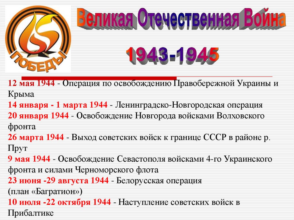 12 мая 1944 - Операция по освобождению Правобережной Украины иКрыма