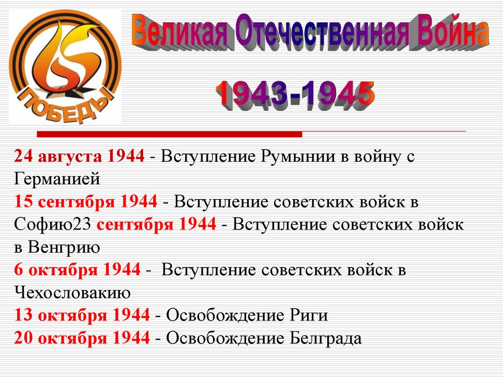24 августа 1944 - Вступление Румынии в войну сГерманией
