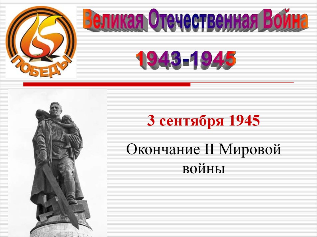 8 мая 1945 - Капитуляция Германии9 мая - Окончание Великой Отечественной войны