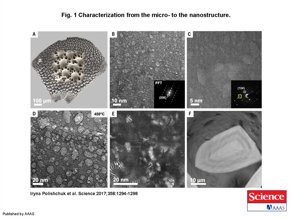 Fig. 1 Characterization from the micro- to the nanostructure.Iryna Polishchuk et al. Science 2017;358:1294-1298