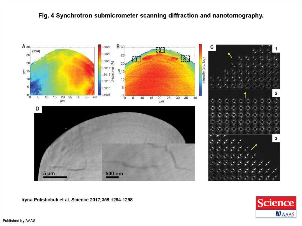 Fig. 4 Synchrotron submicrometer scanning diffraction and nanotomography.Iryna Polishchuk et al. Science 2017;358:1294-1298
