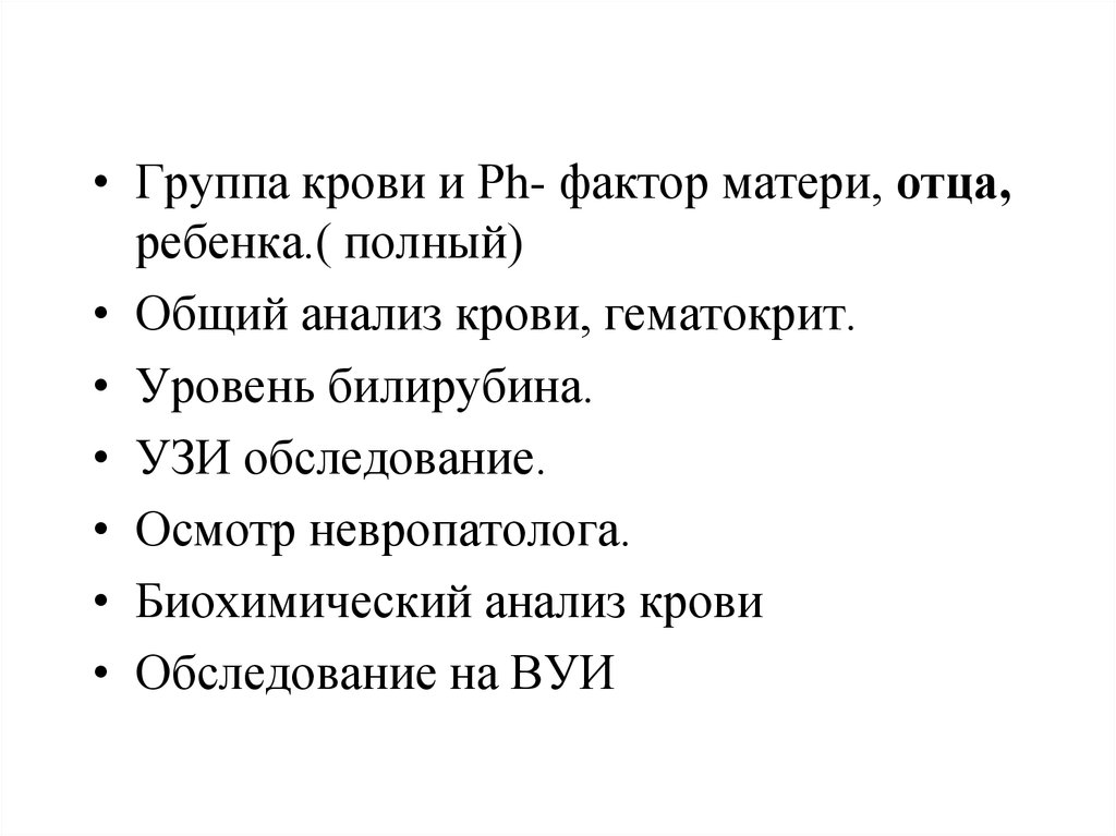 • Группа крови и Рh- фактор матери, отца,ребенка.( полный)