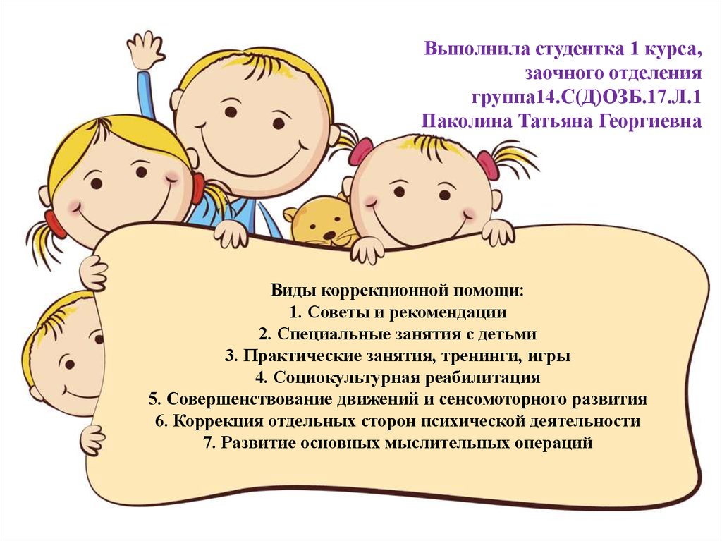 Виды коррекционной помощи:
