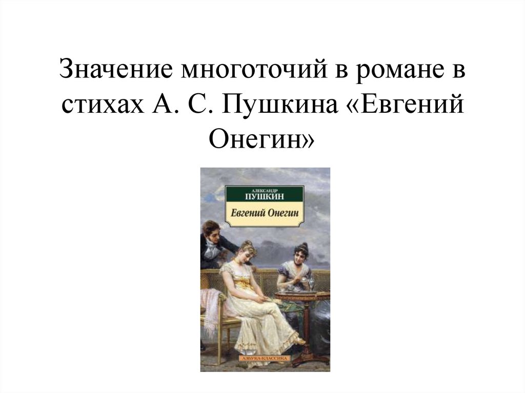1. Значение многоточий в романе в стихах А. С. Пушкина «Евгений Онегин»