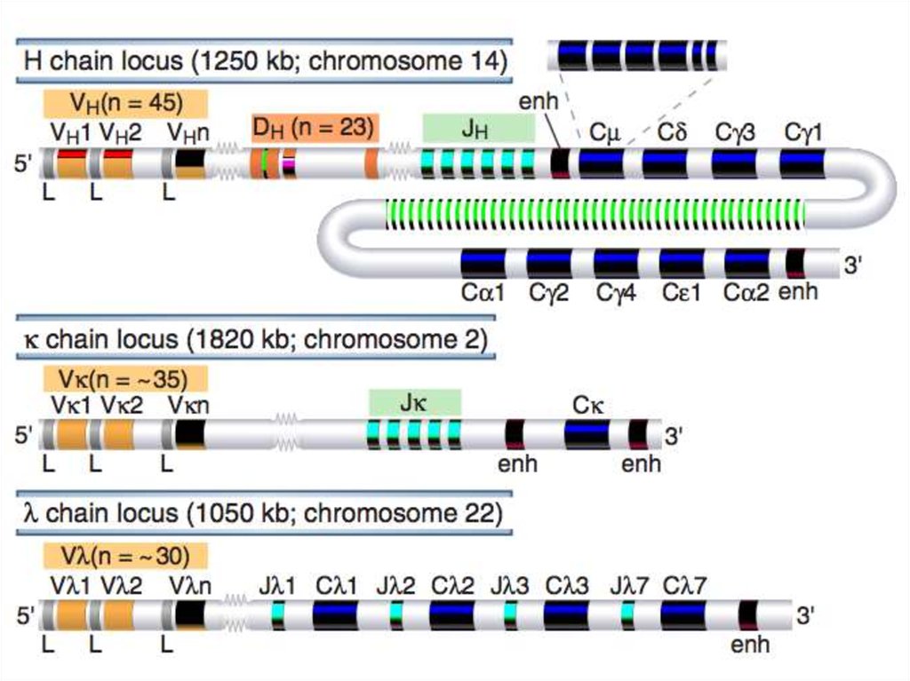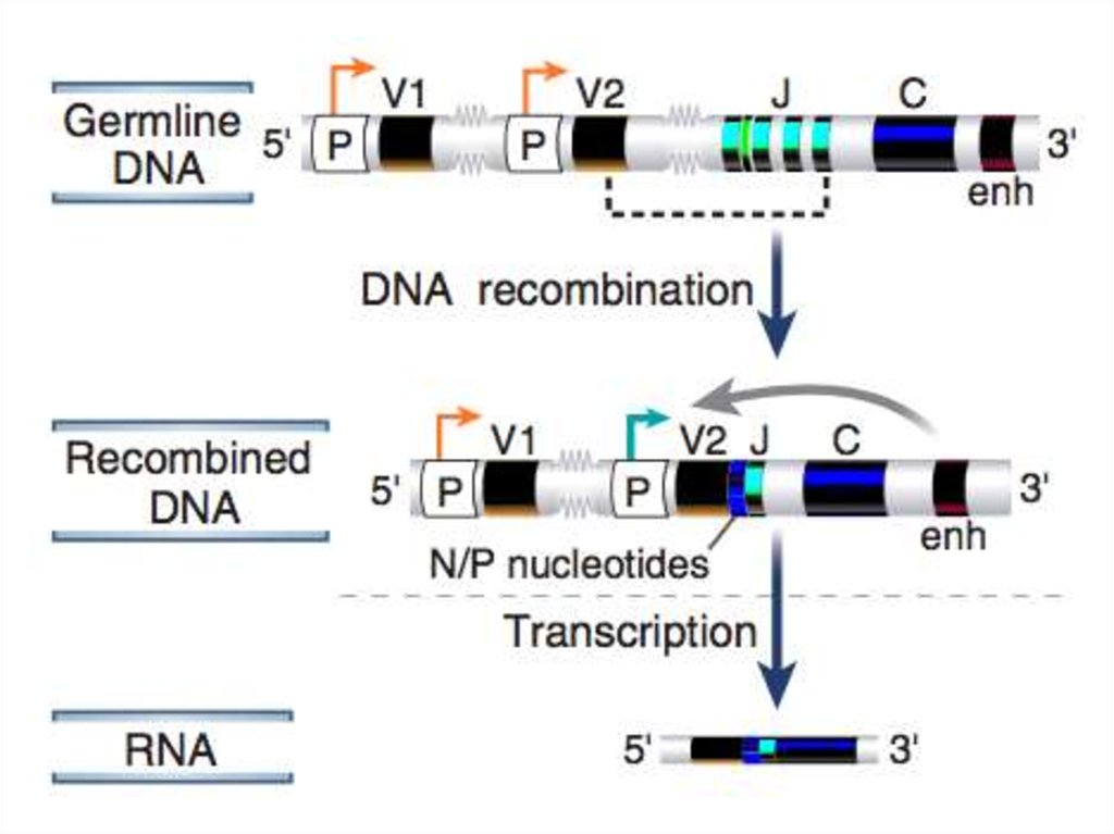 Перестройка генов рецепторов лимфоцитовначинается с экспрессии под влиянием
