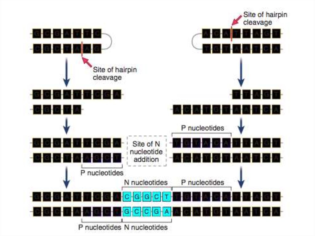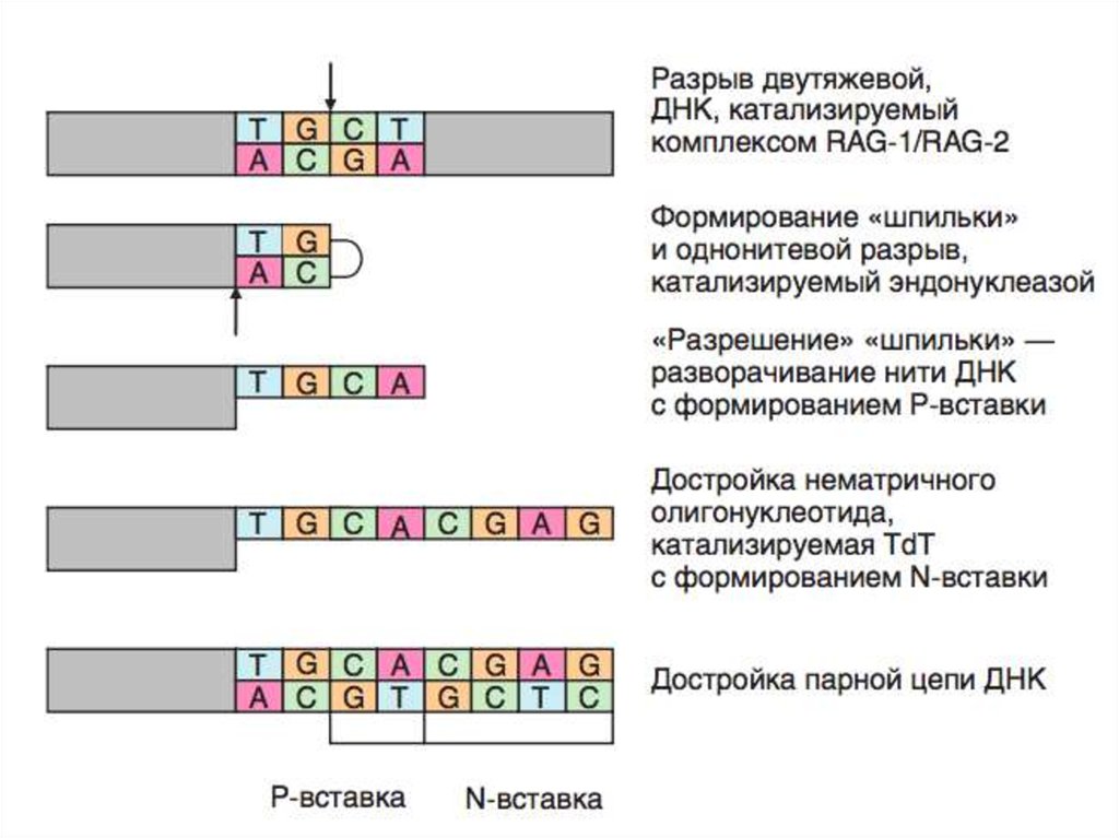 – димер рекомбиназ (экзонуклеаз) RAG-1/RAG-2;