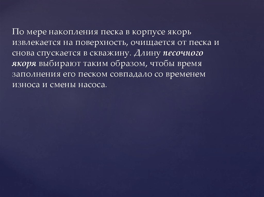 Основное назначение песочных якорей состоит в том, чтобыотделить песок от продукции скважины перед поступлением ее