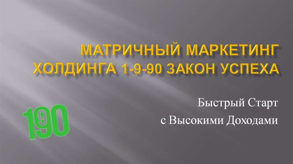 Маркетинг Холдинга 1-9-90. Закон успеха