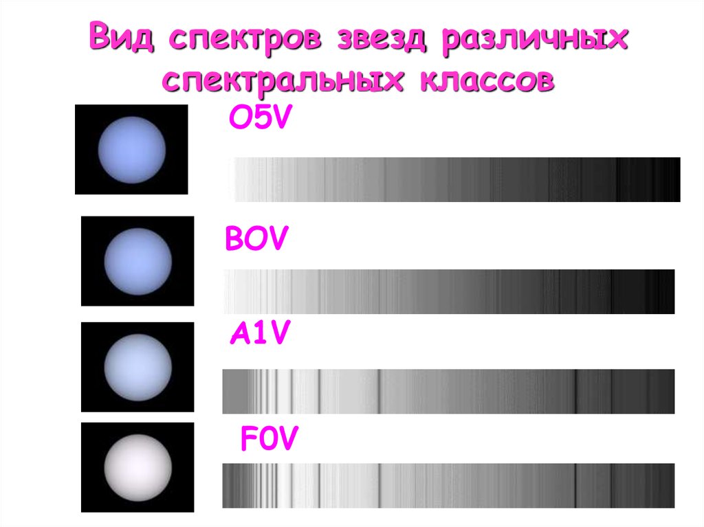 Вид спектров звезд различныхспектральных классов
