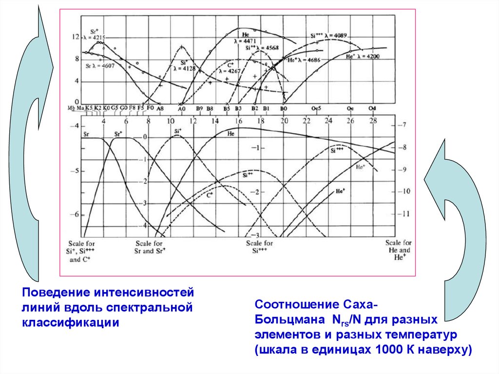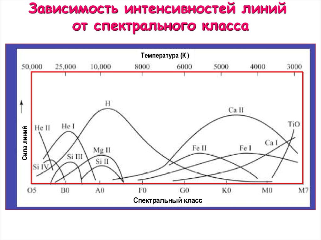 Зависимость интенсивностей линийот спектрального класса