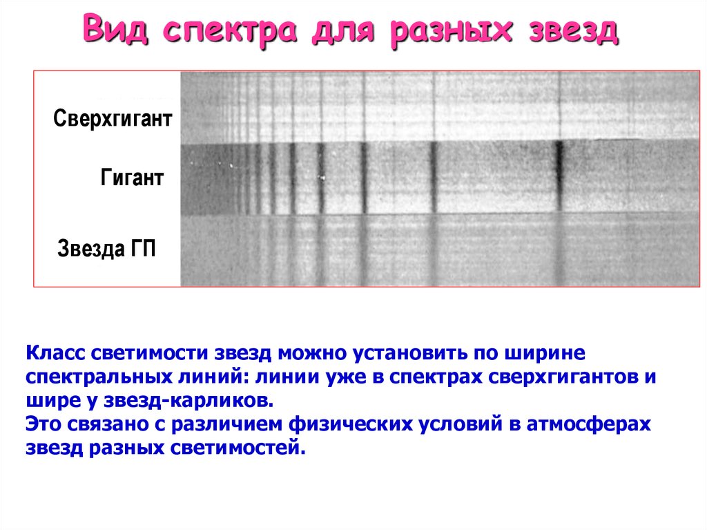 Вид спектра для разных звездСверхгигант