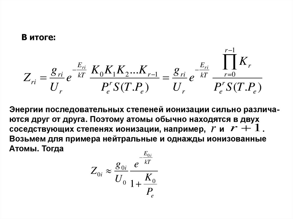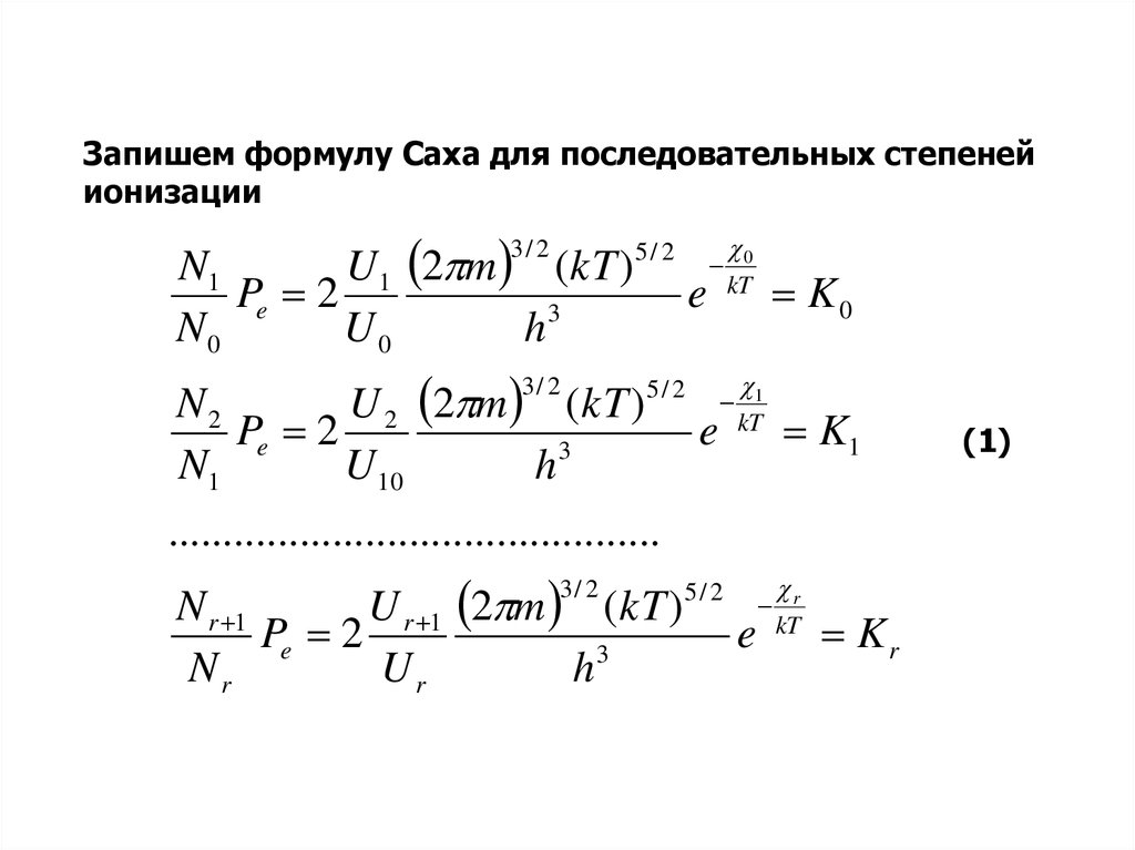Запишем формулу Саха для последовательных степенейионизации