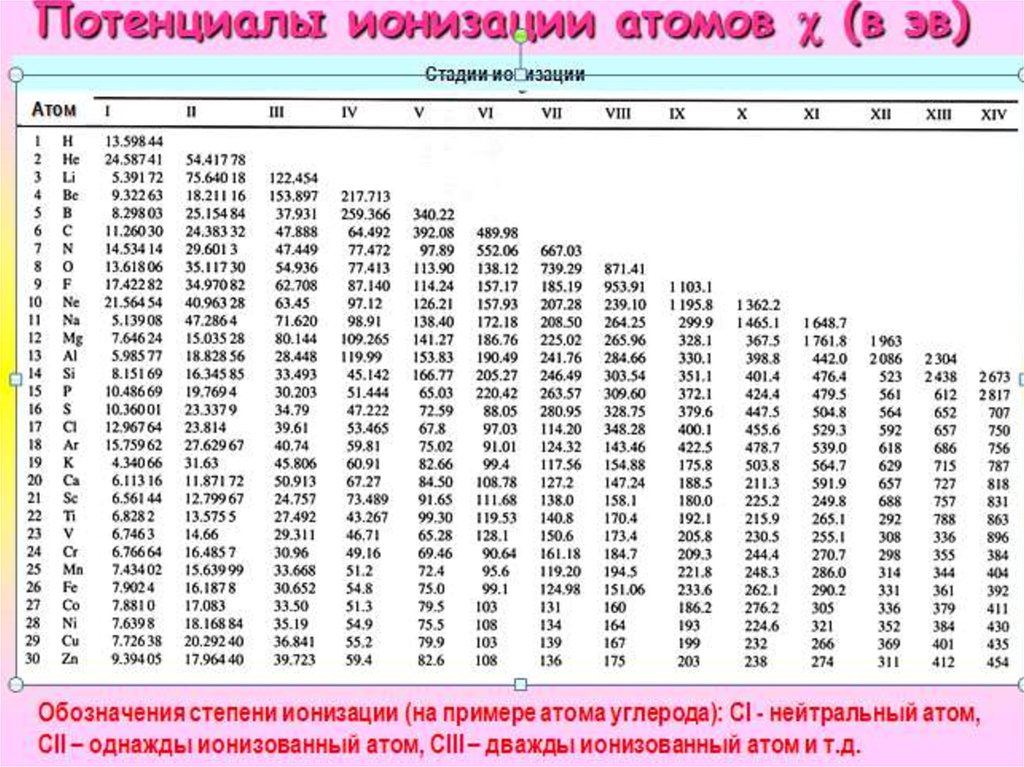 - число электронов, поставляемых при первой ионизации