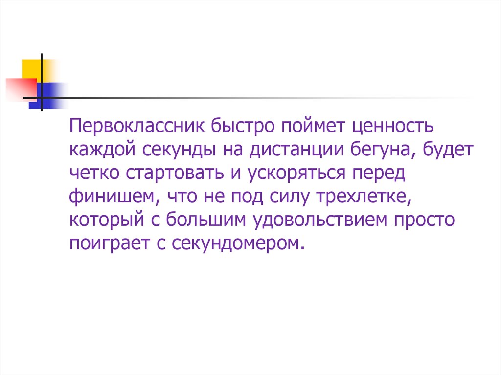 Первоклассник быстро поймет ценностькаждой секунды на дистанции бегуна, будет