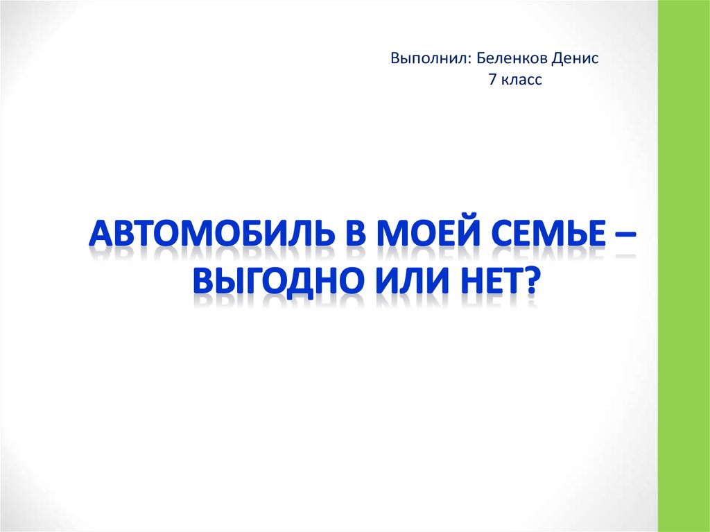 Аттестационная работа. Выгодно или нет иметь автомобиль в моей семье