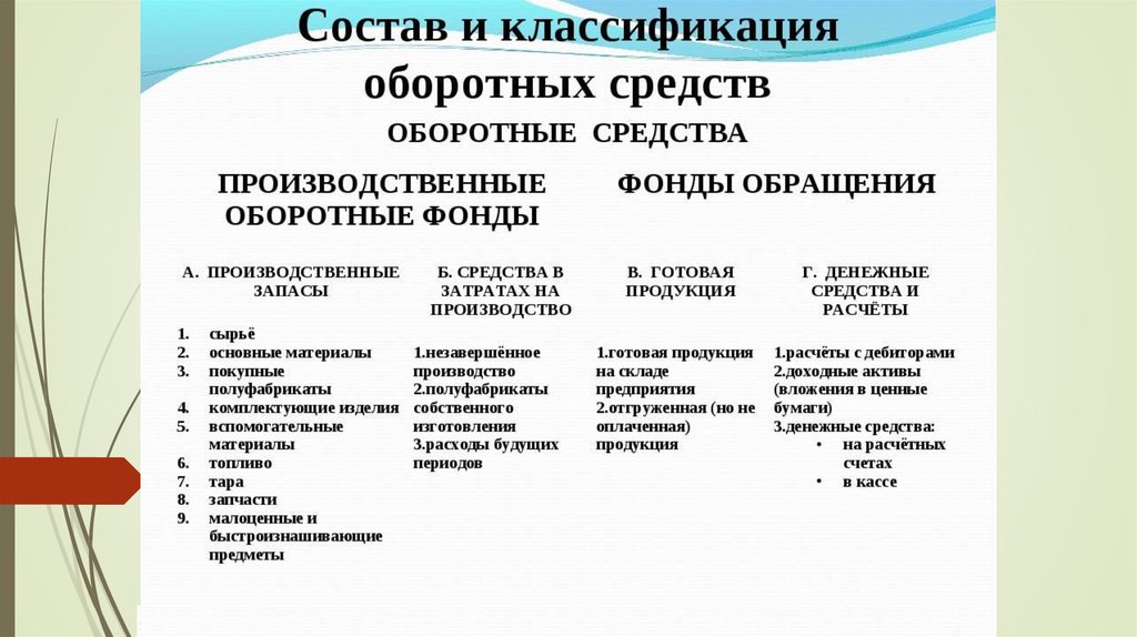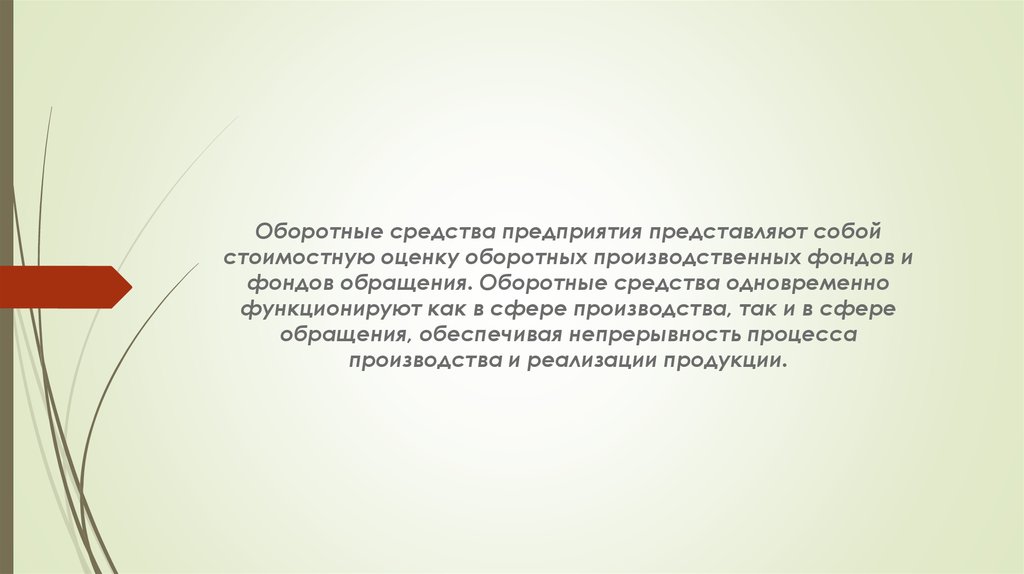 Оборотные средства предприятия представляют собойстоимостную оценку оборотных производственных фондов и