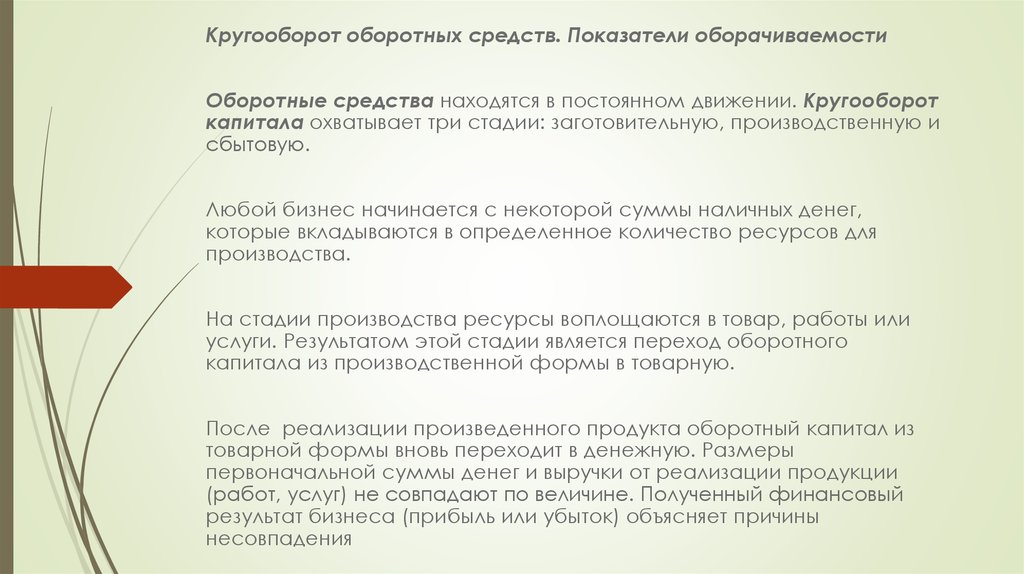 Кругооборот оборотных средств. Показатели оборачиваемостиОборотные средства находятся в постоянном движении. Кругооборот