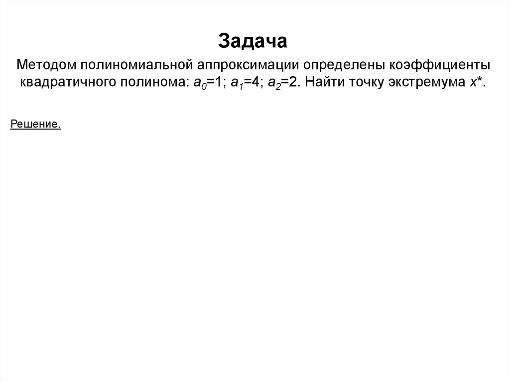 квадратичного полинома: a0=1; a1=4; a2=2. Найти точку экстремума x*.