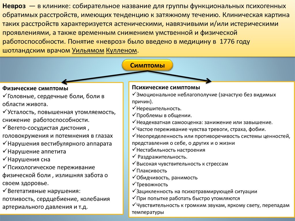 работоспособности. Понятие «невроз» было введено в медицину в 1776 году