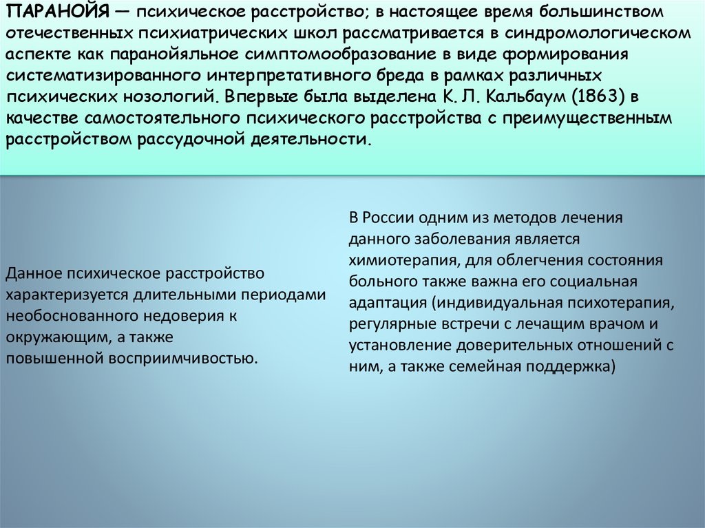 ПАРАНОЙЯ — психическое расстройство; в настоящее время большинствомотечественных психиатрических школ рассматривается в синдромологическом