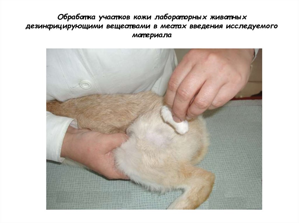 Обработ ка участ ков кожи лаборат орных живот ныхдезинфицирующими вещест вами в мест ах введения исследуемого