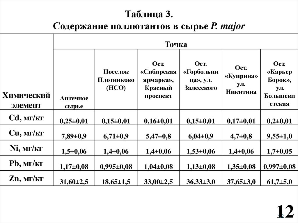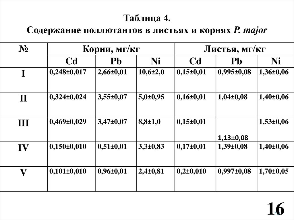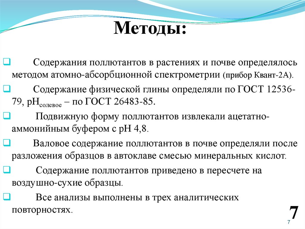 Методы:Содержания поллютантов в растениях и почве определялось