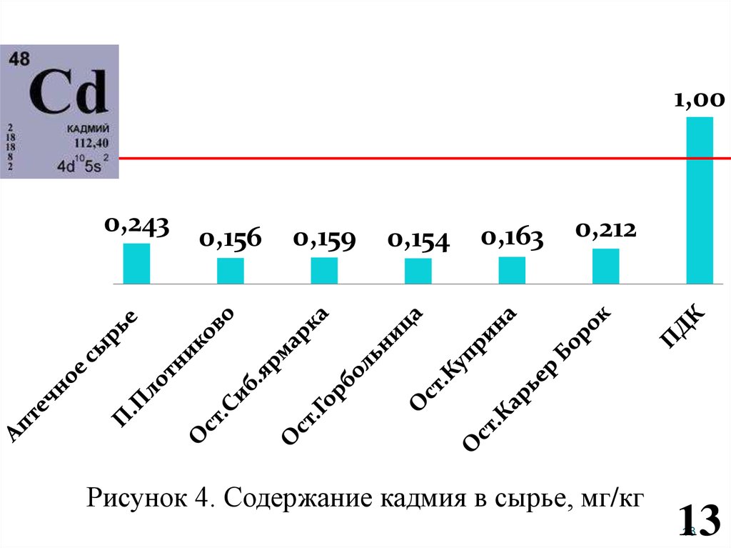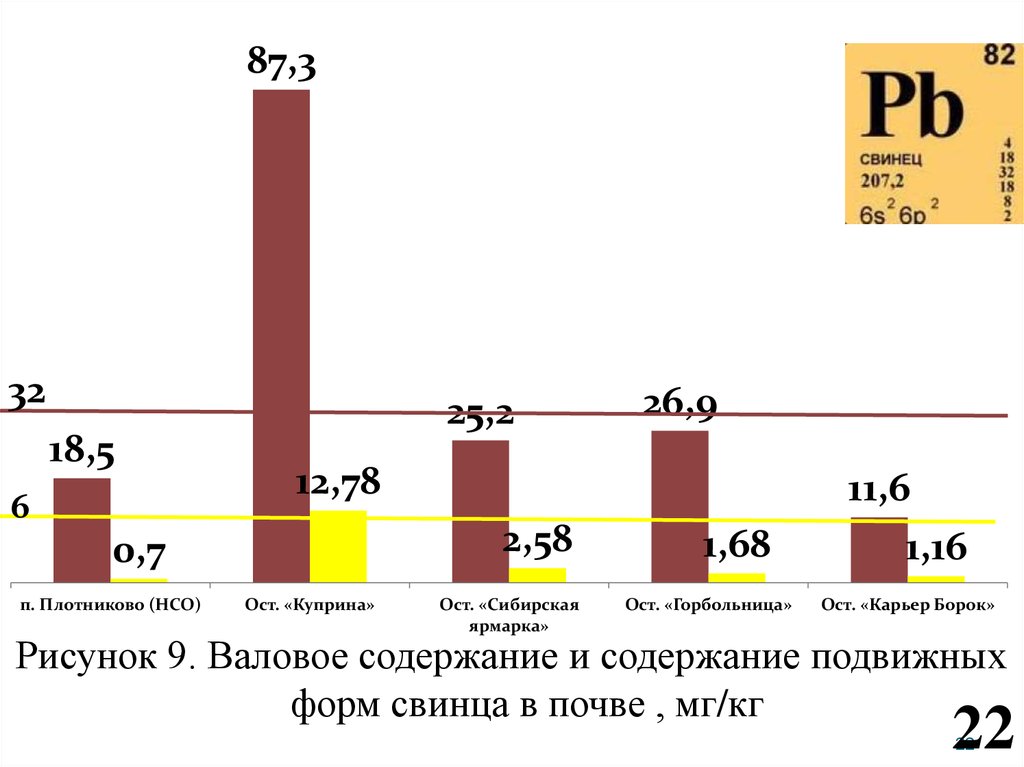 21. Рисунок 8. Валовое содержание и содержание подвижных форм кадмия в почве, мг/кг