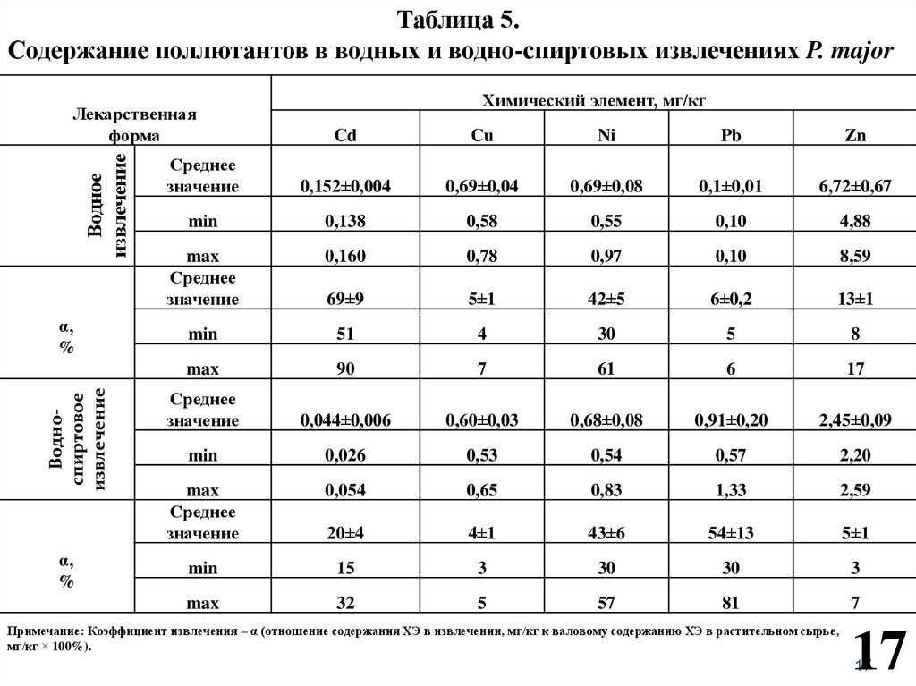 Выявлены тенденции перехода отдельных поллютантов в извлечения.