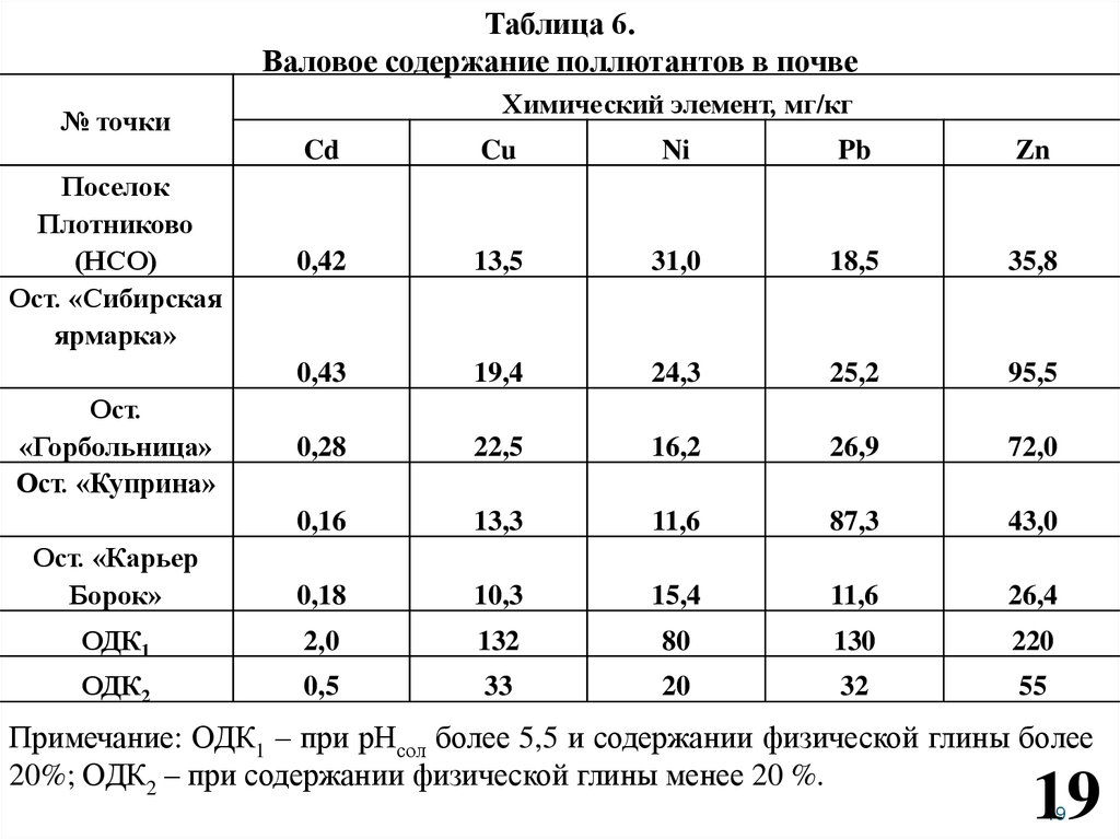 Примечание: ОДК1 – при рНсол более 5,5 и содержании физической глины более