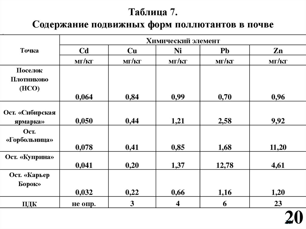Таблица 7.Содержание подвижных форм поллютантов в почве