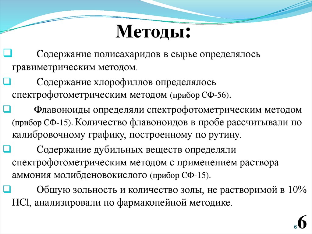 Методы:Содержание полисахаридов в сырье определялось
