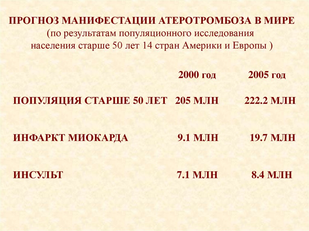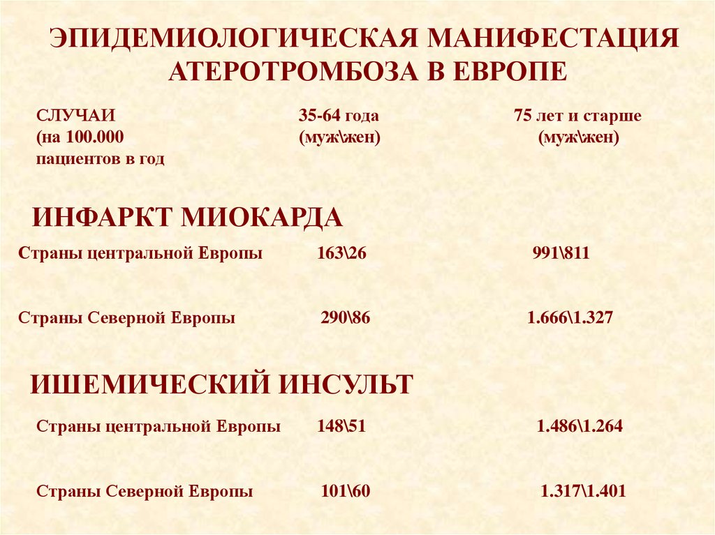 ЭПИДЕМИОЛОГИЧЕСКАЯ МАНИФЕСТАЦИЯАТЕРОТРОМБОЗА В ЕВРОПЕ