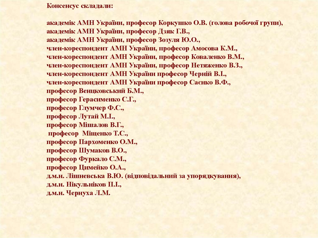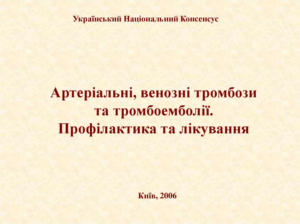 Рабочая группа по составлениюУкраинского консенсуса «Тромбозы в клинической практике»