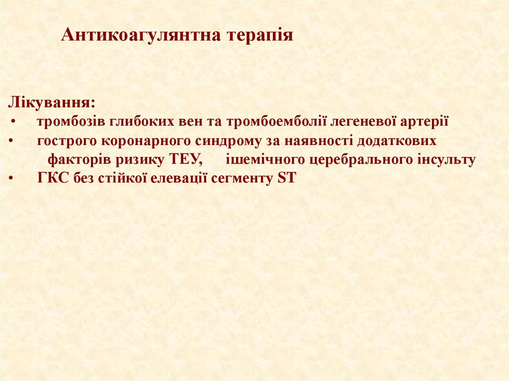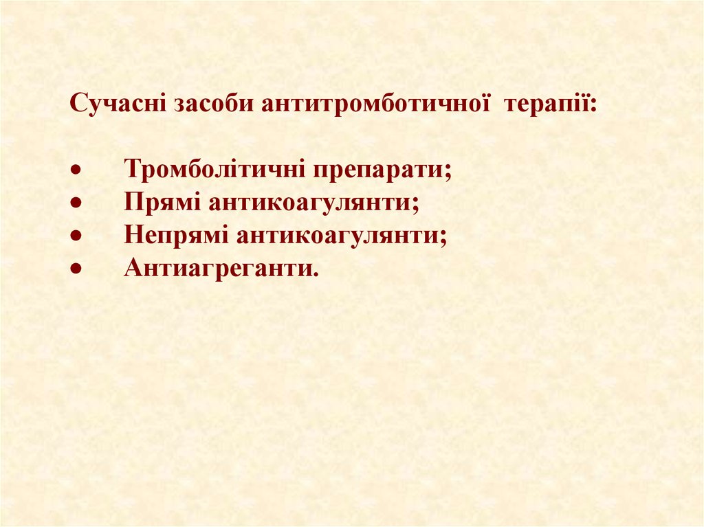 • Антитромботическая терапия снижает количество острых