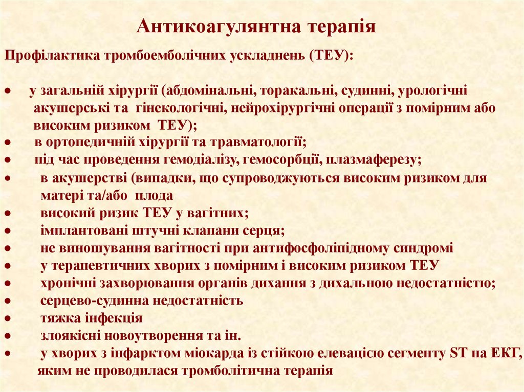 • Антитромботическая терапия должна обязательно назначатьсявсем пациентам с высоким риском сосудистых событий